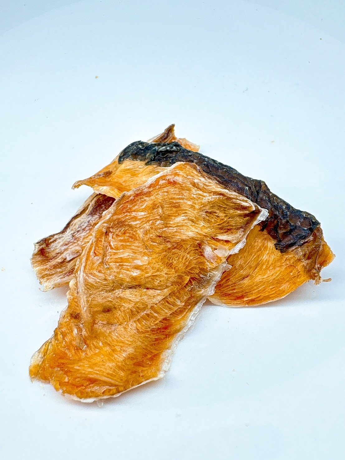 手で簡単に裂くことができます。そのまま裂いて与えるかほぐしてフードにトッピングしてください。水分を含ませて与えることもできます。