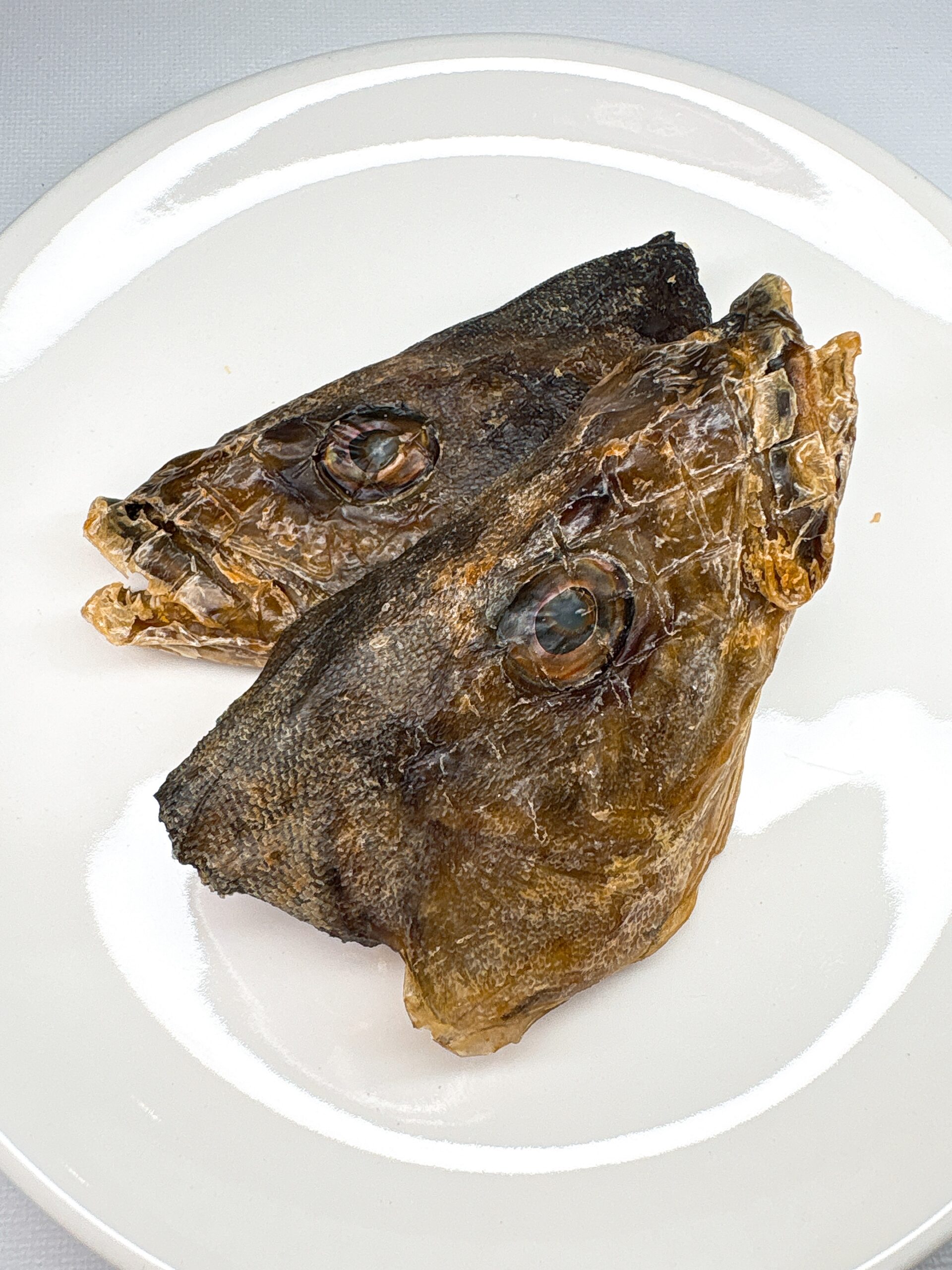 函館近海で獲れた新鮮なホッケの頭を半分に割り長時間乾燥させ食べ応えのあるおやつにしました。